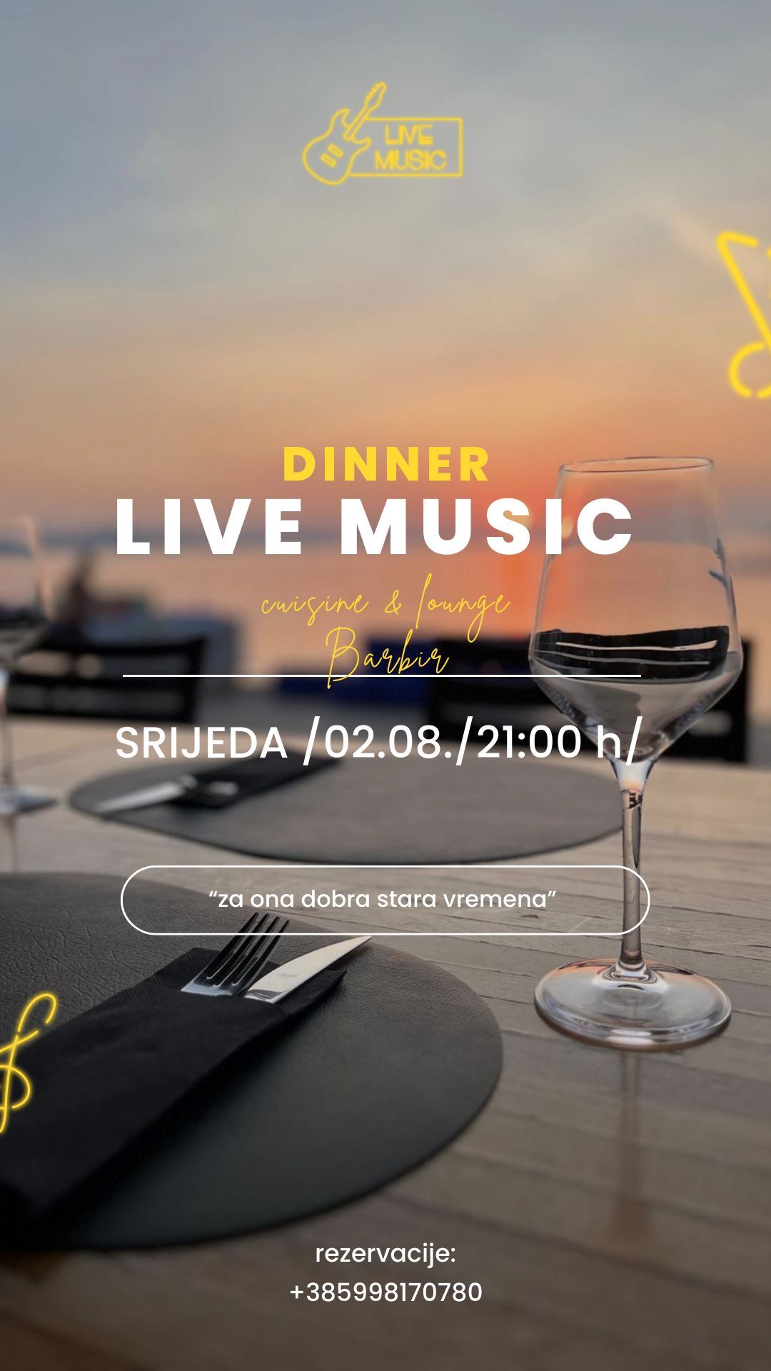 Posjetite nas u srijedu 02.08. od 21:00 h kada započinje DINNER LIVE MUSIC
